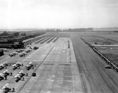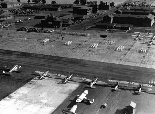 A & R building (#1) on far left, followed by the M & E hangars (#4 & 5).