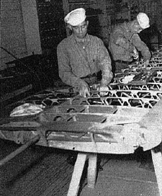 Working on the ribs for a biplane wing.