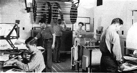Photographic Lab. Note the film on the cylinder dryer.