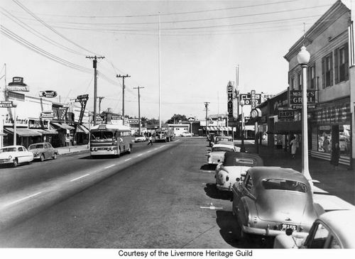 installation, Mally's, etc. Page 2: West end, & 40s pictures. Page 3: Just west of Livermore Ave. Page 4: East First Street. See Also: Flagpole - Aerial Photos - Hotels - Theaters - Laddsville |