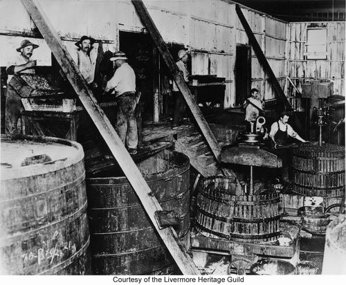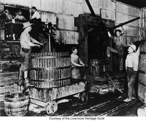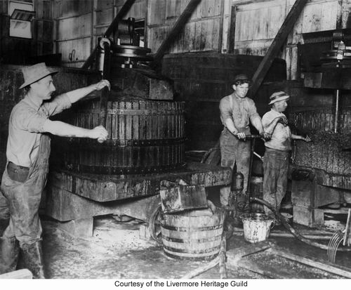 Loading the press. Cresta Blanca Winery, 1911