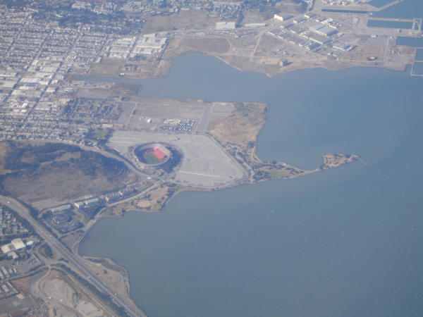 Several photos of the San Francisco ball parks, taken from the air.