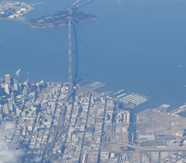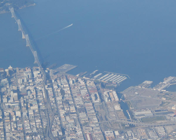 SBC Park is to the right of center, at the edge of the strip of