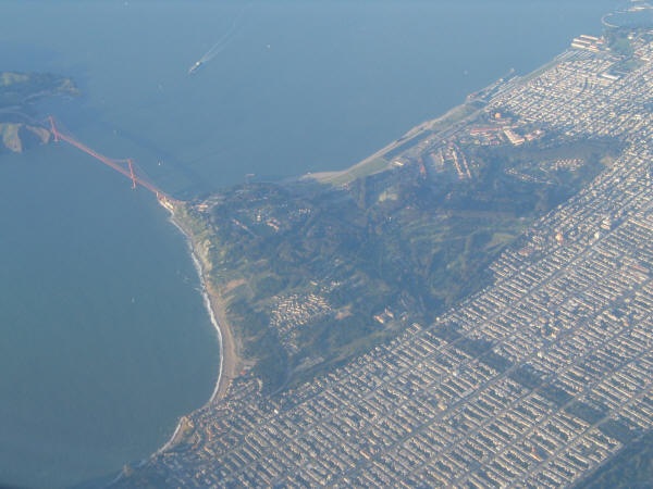 The Golden Gate Bridge, and the San Francisco Presidio.