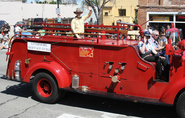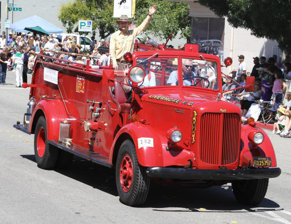 ![]() #140 - Livermore's First Motorized Fire Truck Livermore Heritage Guild This 1919 Ford Model-T Chemical Fire Truck was the very first motorized fire truck owned and operated by the City of Livermore. The truck has been recently restored by volunteers from the Livermore Heritage Guild. It has a 50 gallon chemically pressurized water tank so it can operate without being hooked to a fire hydrant. Garry Bausch is the driver and Christine Thompson is his co-pilot. Part of our history right here for us to see! |