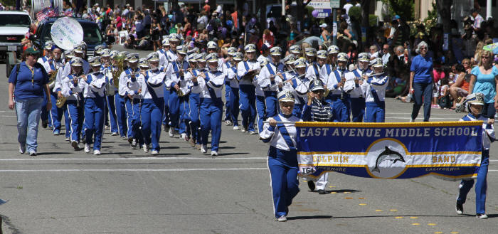 ![]() #164 - East Ave. Middle School Dolphin Band Their Music Department has just completed another fantastic year of music, culminating with both the advanced Orchestra and Band earning a "Superior" rating at festival. East Avenue Science Teacher, Mrs. Erlwein is a finalist for the Comcast All Star Teachers Award for 2010! They are asking for the communities help to go on-line and vote for her. If she wins, the School will receive $10,000! Look for a student passing out voting info. The students thank their parents and the community for all their help and support this year. And now, under the baton of Drum Major Ashley Lozano, the band presents Silver Eagle by Andrew Balent. |