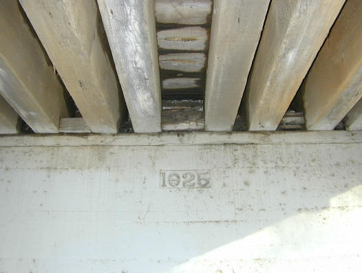 Underneath the bridge showing its wooden construction and the