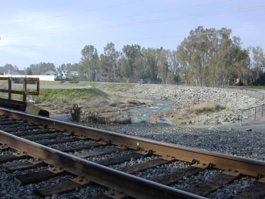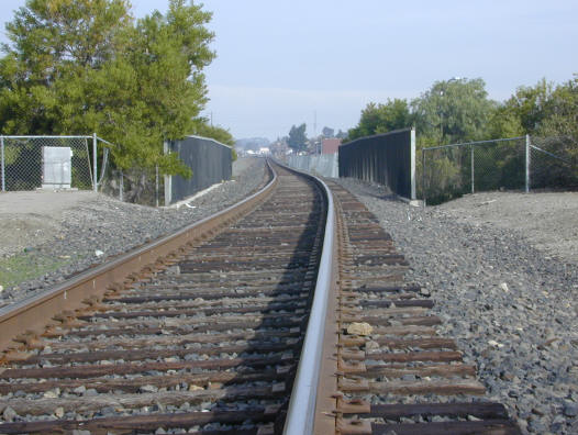 Existing tracks with the bridge over the Arroyo Mocho to the
