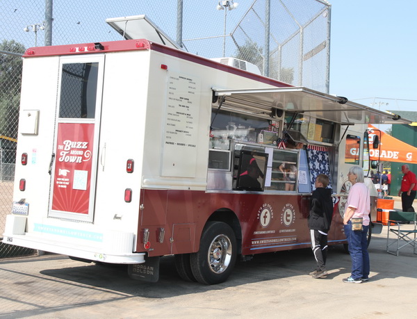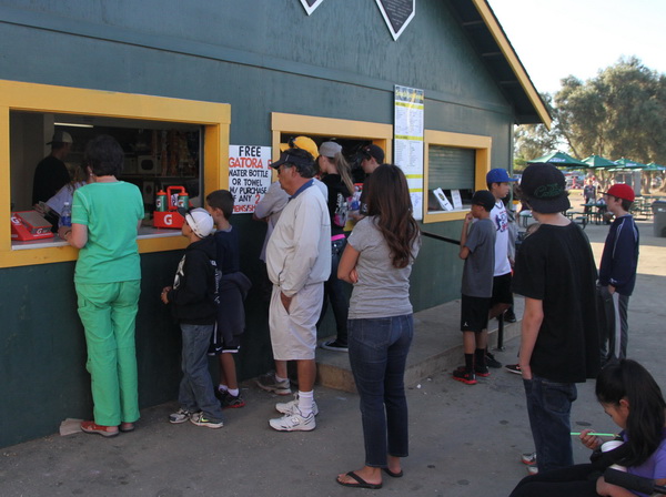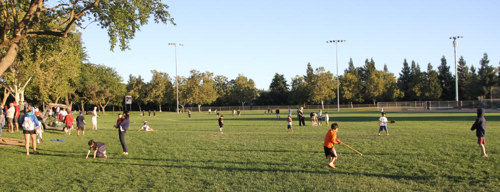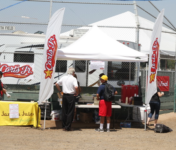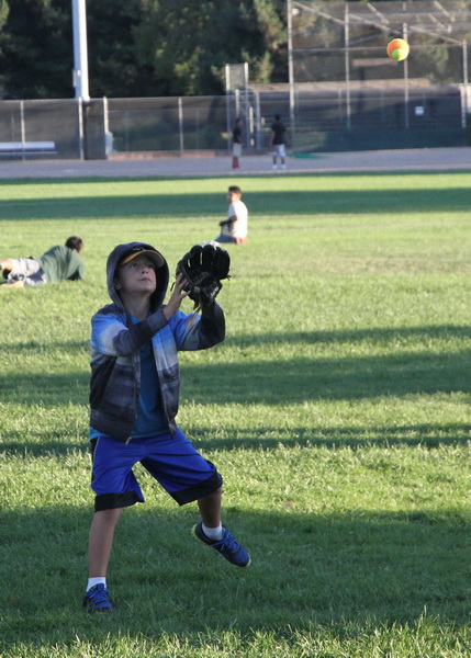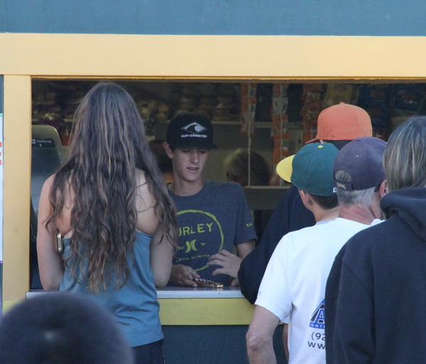 It was a very relaxed atmosphere out beyond center field, with kids and adults playing ball, throwing a football, etc. This was happening almost every game, and provided a great atmosphere for the games. A very different experience out here vs. in the stands down the base lines. |