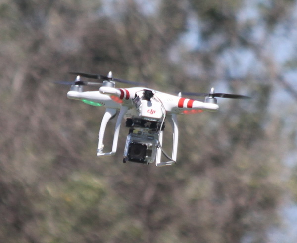 Drones come to Livermore. This RC Helicopter was flying over the field before a game taking photos of the crowd. |