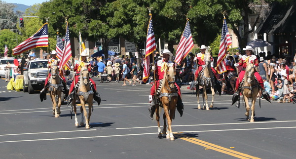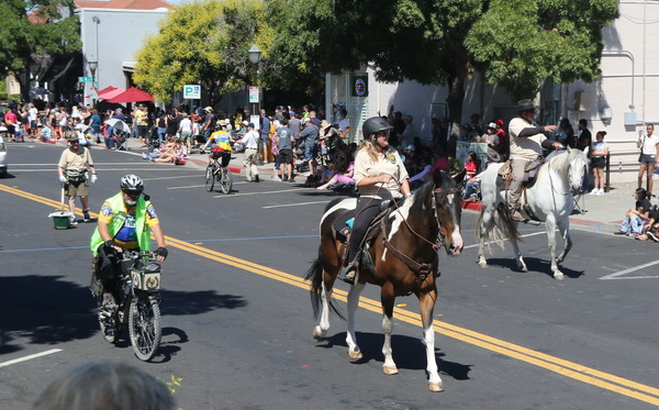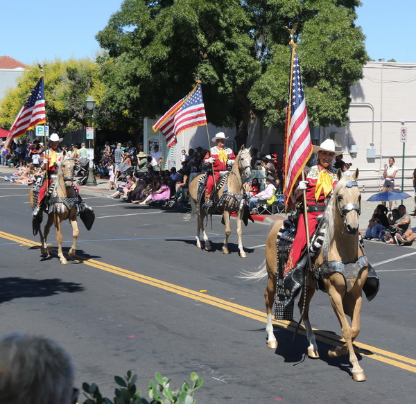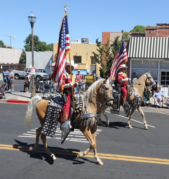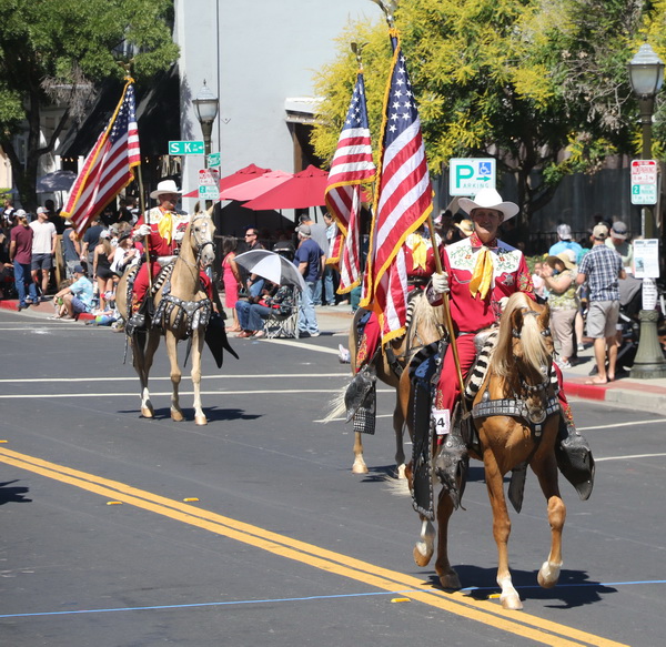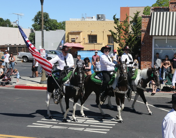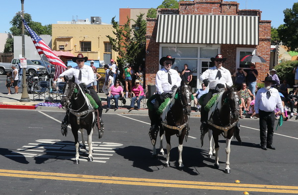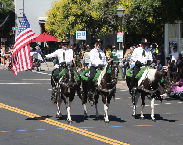 #34 - Merced County Sheriff Posse Equestrian Sweepstakes Award Sheriff's Posse The Merced County Sheriff Posse is an all Sterling Silver Mounted Group that was organized in 1948. This year they were selected to ride in the Rose Parade in Pasadena! The Posse took 123 Palominos to this spectacular parade. They're happy to be back on the parade route and see everyone's smiling faces! Riding today is Captain Roger Gonsalves, 1st Lieutenant Richard Ellington, 2nd Lieutenant Laurette Locke, and trail master Eric Gonsalves. |