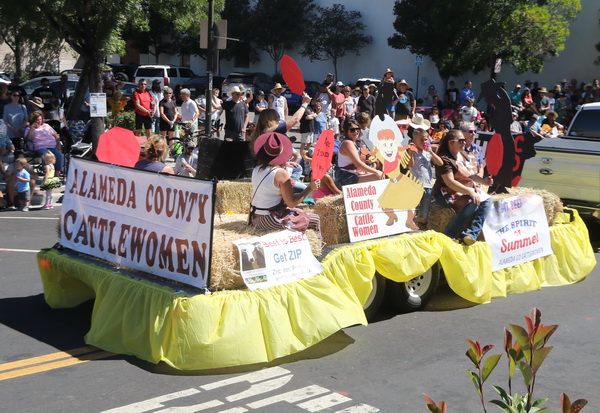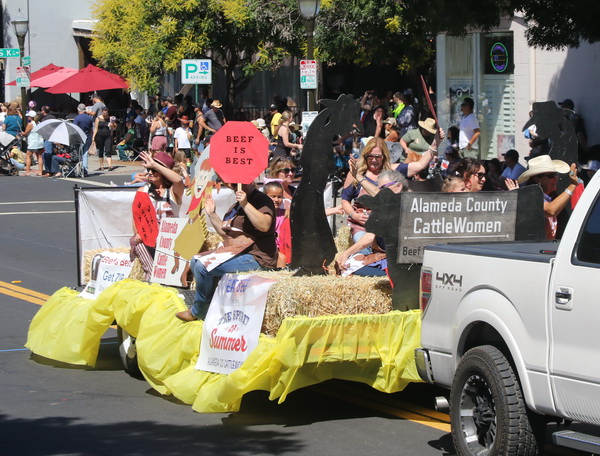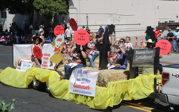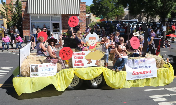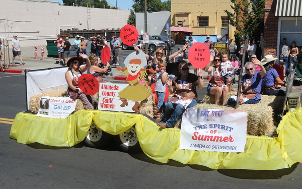 #35 - Alameda County Cattlewomen 1st Place: Amateur Float "Alameda County Cattlewomen” promotes BEEF a nutritious, healthy food product. Riding on the float is President Ana Marciel and members of the Cattlewomen's unit. 'BEEF IT'S WHAT'S FOR DINNER!'" |