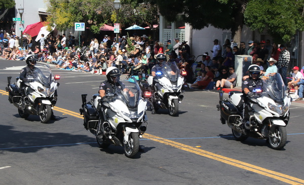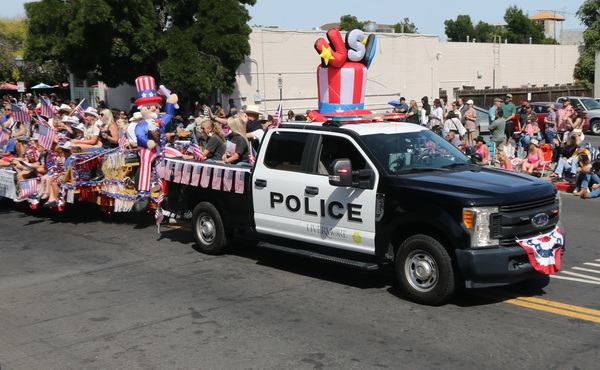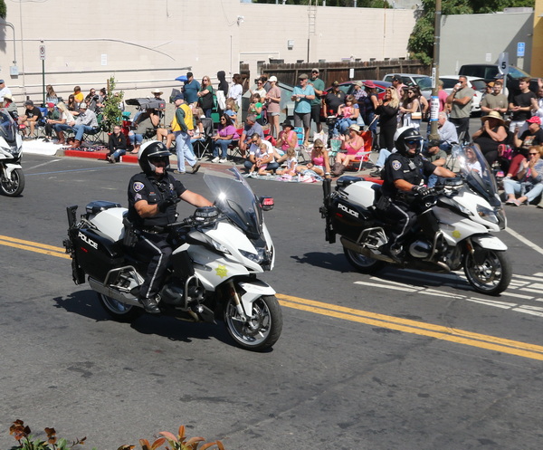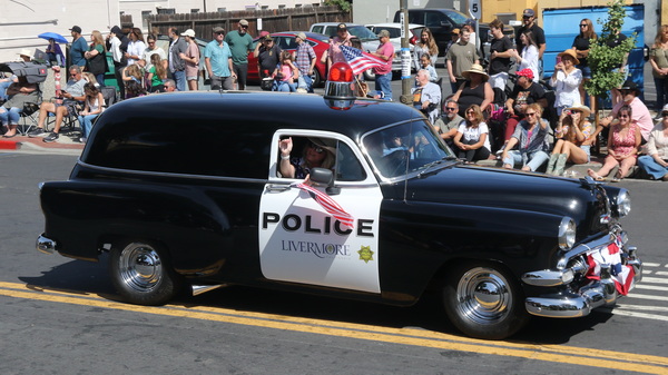 #1 - Livermore Police Department Livermore Police Department led by the Motor Unit of BMW motorcycles. Next we have the ’54 Chevy, donated by the Altamont Cruisers car club many years ago. Driving the ’54 Chevy is John Amaral and his wife Angela, both are LPD Volunteers, Angela was the selected the 2024 Volunteer of the Year! Last, we have an LPD truck driven by Reserve Officer Don Swanson, pulling a float decorated by the Livermore Police Volunteers. On the float are the Chief of police, LPD families and volunteers, along with Support Dogs Tater and Murphy. The Livermore Police Department was established in 1876. The LPD mission is: “Service with Honor, Protection with Purpose.” Recently Livermore was named among the 20 safest suburbs in the U.S |