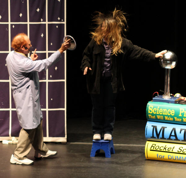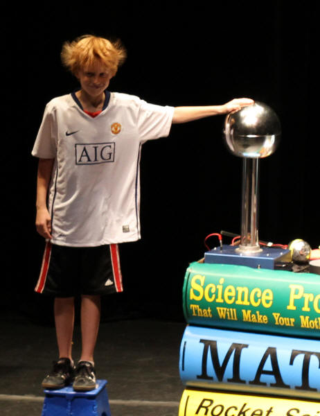 ![]() A young man's hair standing up from the Van de Graaff generator |