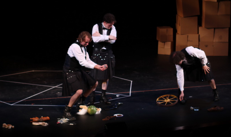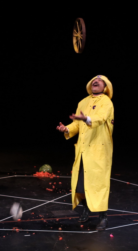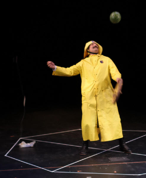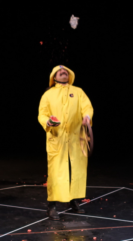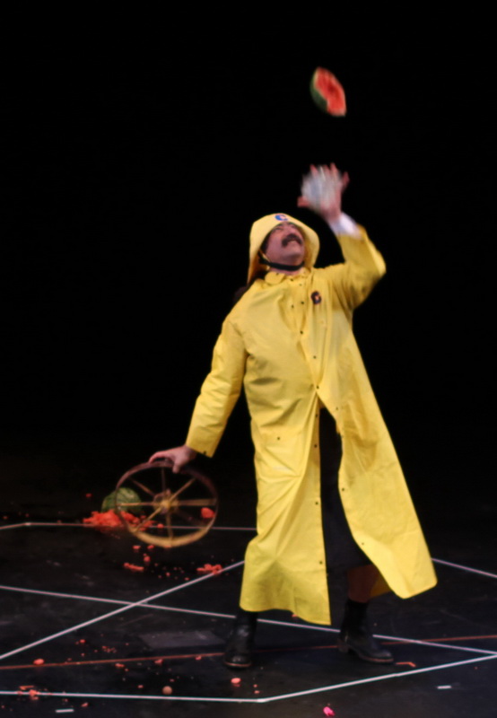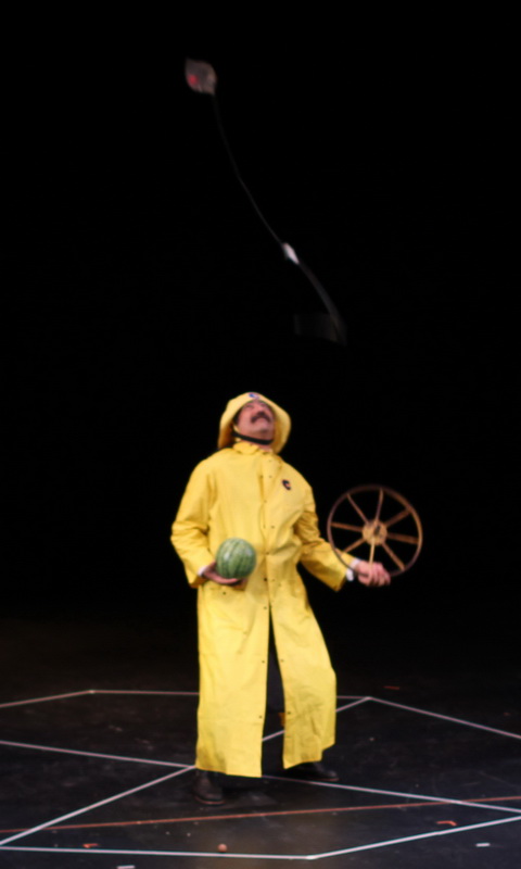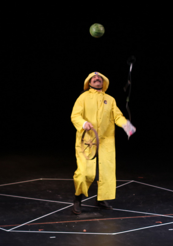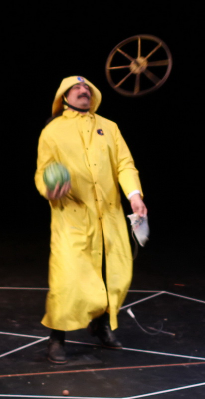 ![]() The audience is now voting on what three items to use. The winners were a wheel (from an old wheelbarrow or something), an IV bag w/hose, and a small watermelon. |