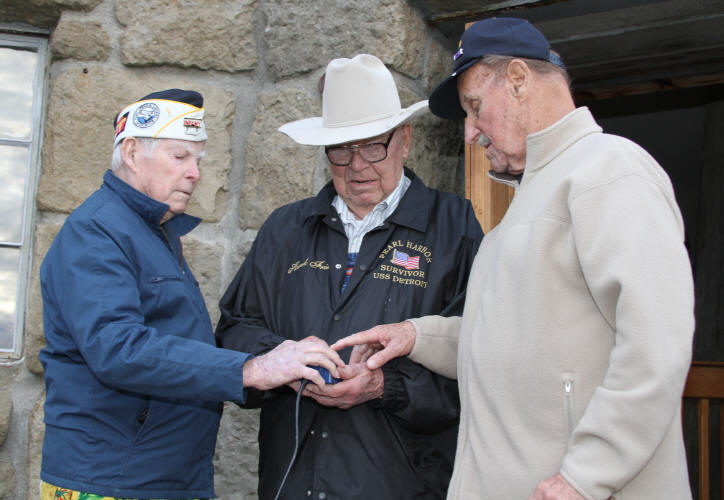 ![]() The Pearl Harbor survivors hit the switch to turn on the beacon. |