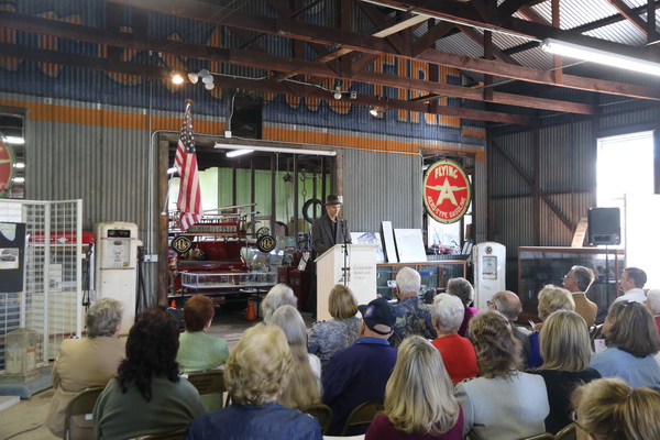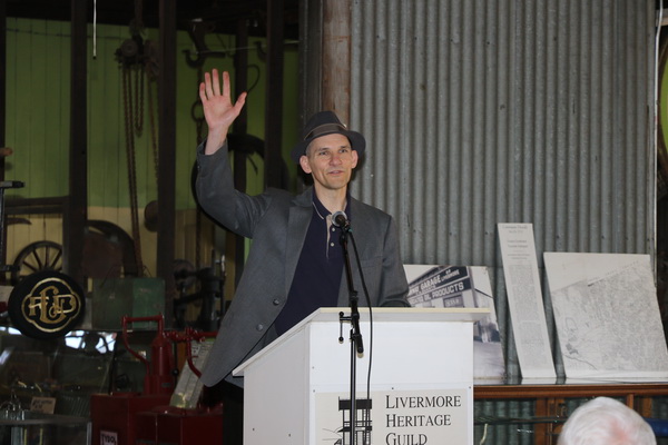 Jeff Kaskey, President of the Livermore Heritage Guild provides the history of the Duarte Garage |