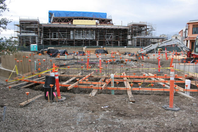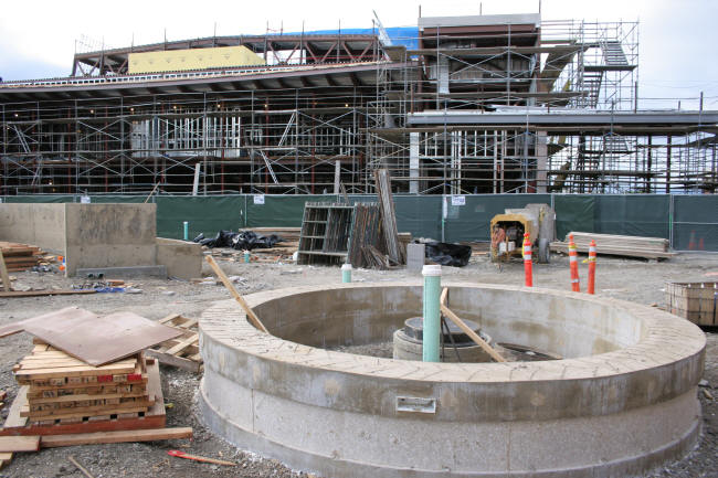 Circular planter (east side), with the theater in the background.