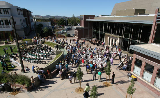 The Livermore High School Band is on the SheaHomes Stage.