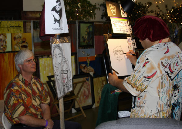“Big Al” Lopez drawing a caricature of Greg Bequette. The